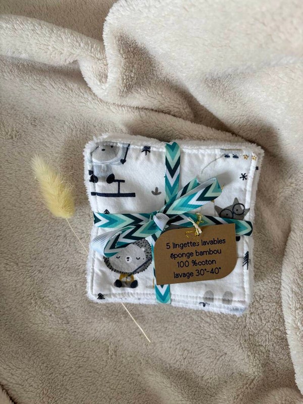Lingette 100 % coton , éponge de bambou okeo TeX , parfait pour la petite peau toute douce de votre bébé , enfant .