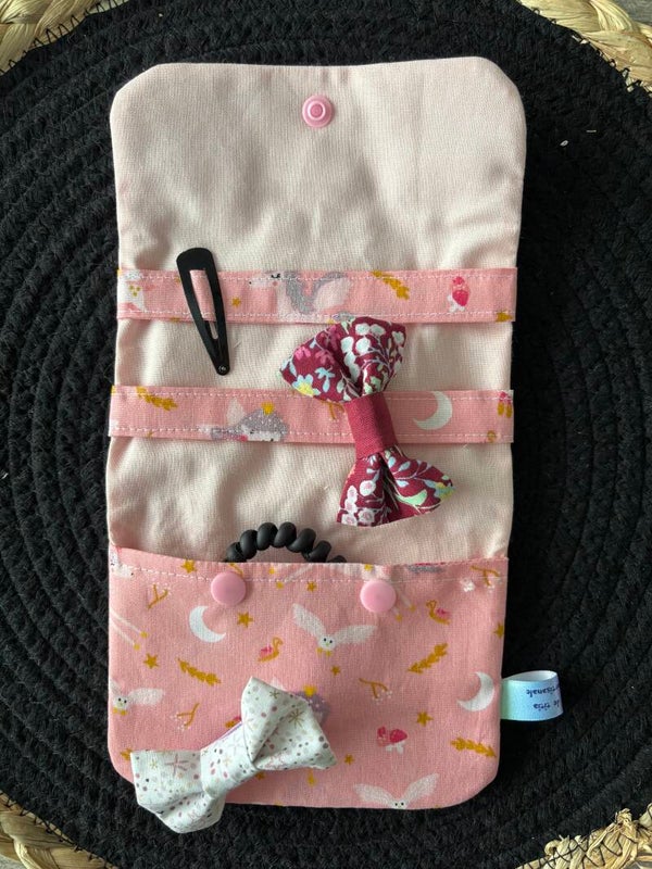 Pochette à barrettes et élastiques, accessoires cheveux, pochette barrettes, pochette élastiques, pochette pinces