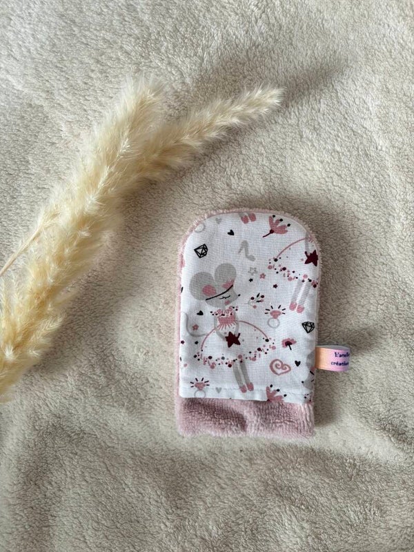 - Mouillez le gant avec de l'eau ou avec un peu d'eau micellaire ou savon .